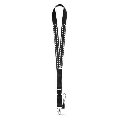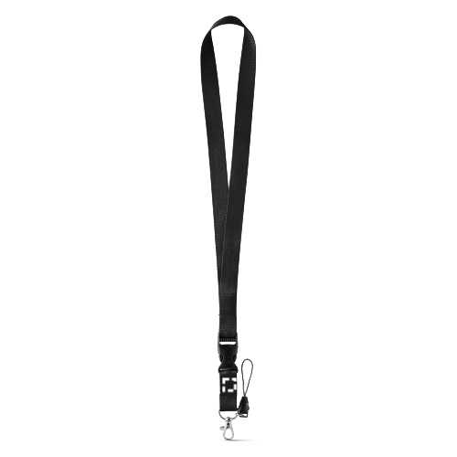 Lanyard aus Polyester, 20 mm breit mit einem Schlüsselband und einer abnehmbaren Schnalle. Karabinerhaken aus Metall. 20 x 530 mm
