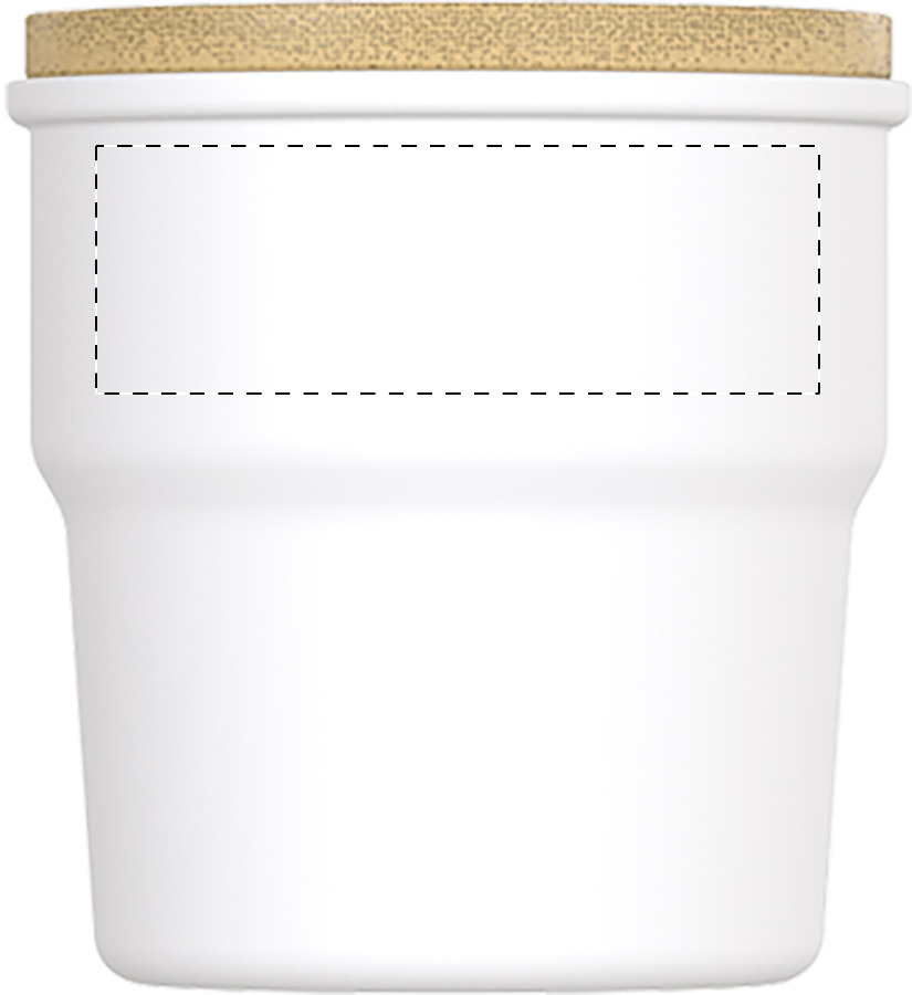 Hochwertige Keramiktasse mit Bambusdeckel, matter Außen- und glänzender Innenseite. Füllmenge: 240 ml. Einzeln in Kraftpapierbox.
