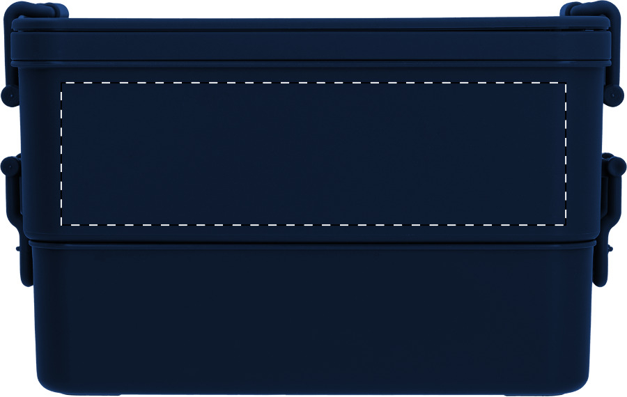 Lunchbox aus PP Kunststoff mit Besteckset (Gabel, Löffel und Messer), Schnallenverschluss und zwei Abteilen (1000 ml & 800 ml). Stapelbares Design für kompakte Aufbewahrung.
