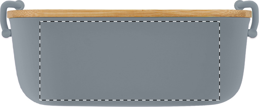 Lunchbox aus PP-Kunststoff mit Bambusdeckel und Schnallenverschluss. Füllmenge: 1000 ml.