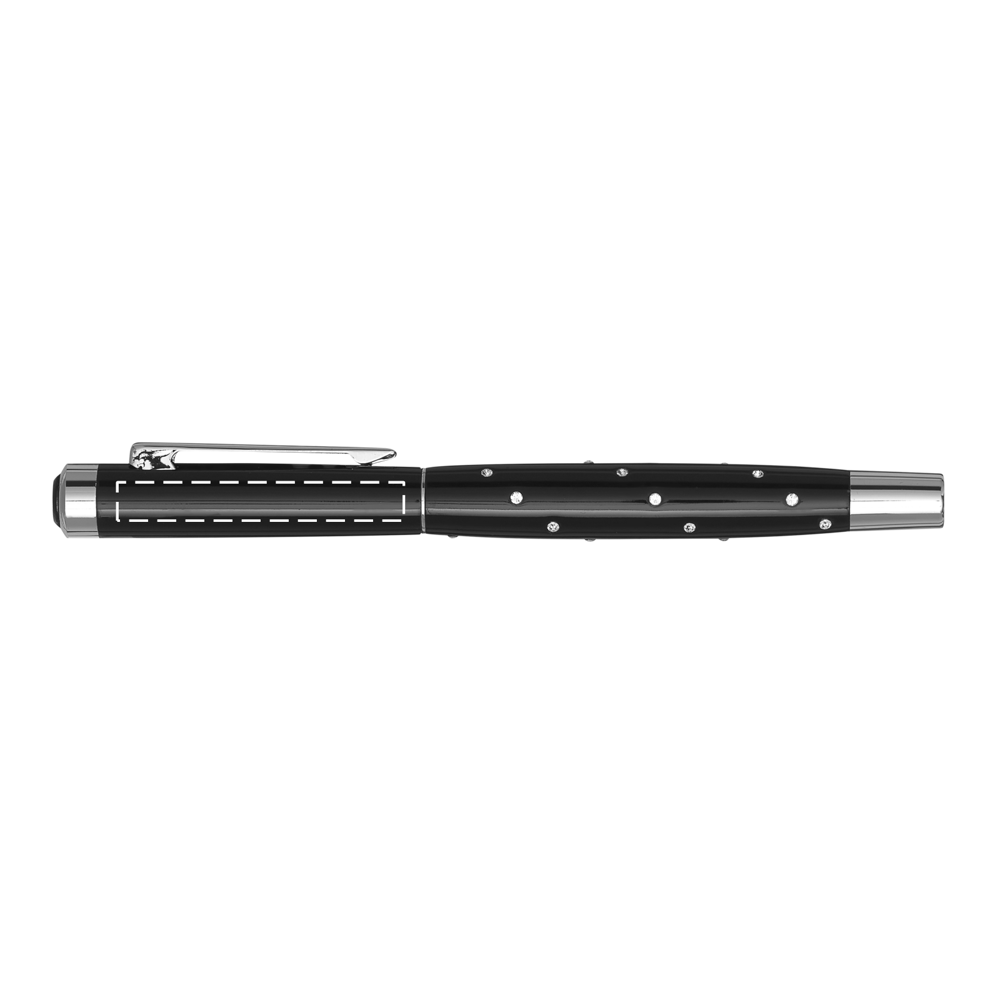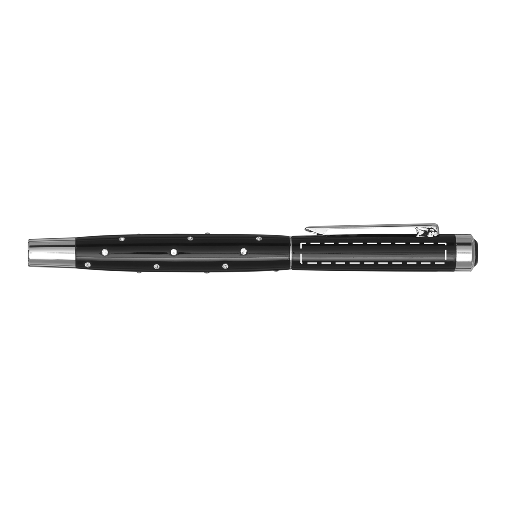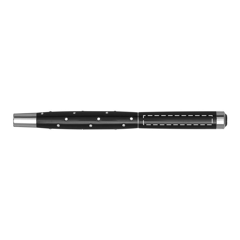 Metall-Tintenroller RIGA: in schwarzer Klavierlack-Optik, mit Metall-Schaft, verziert mit 24 CRYSTALLIZED™-Swarovski-Elementen, Verschlusskappe mit Clip, schwarzschreibend, im Etui