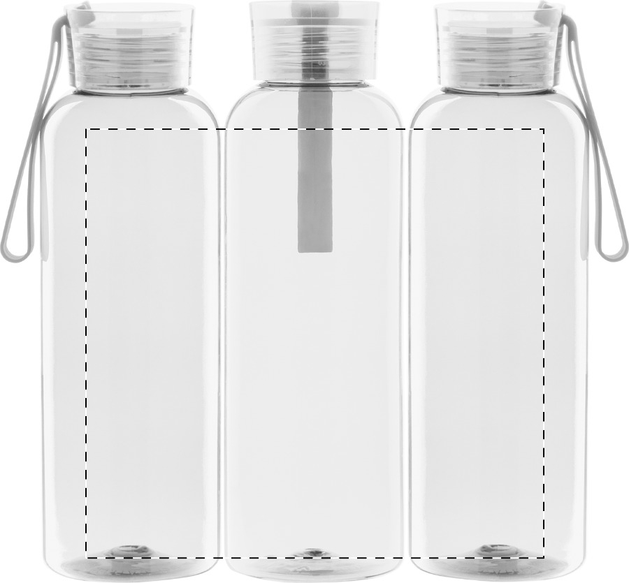 Flasche aus RPET mit farblich abgestimmten Deckel und Silikon-Trageschlaufe. Füllmenge: 500 ml. Nicht geeignet für kohlensäurehaltige Getränke.