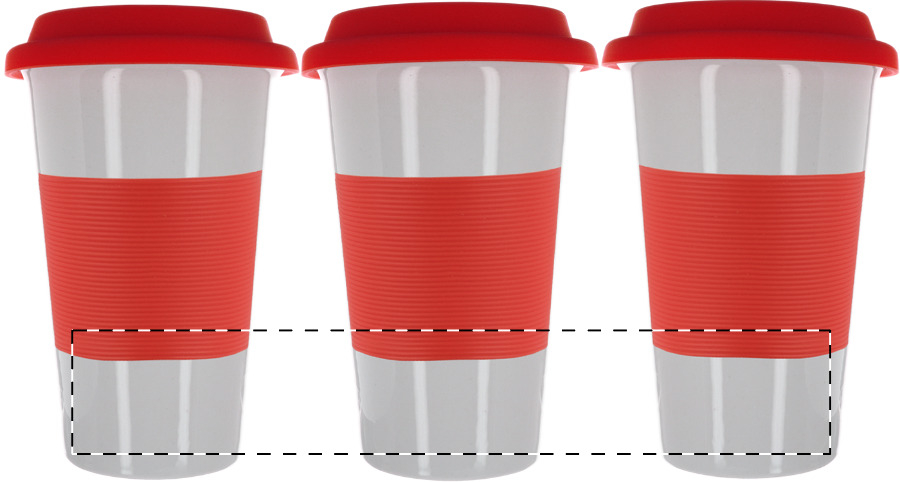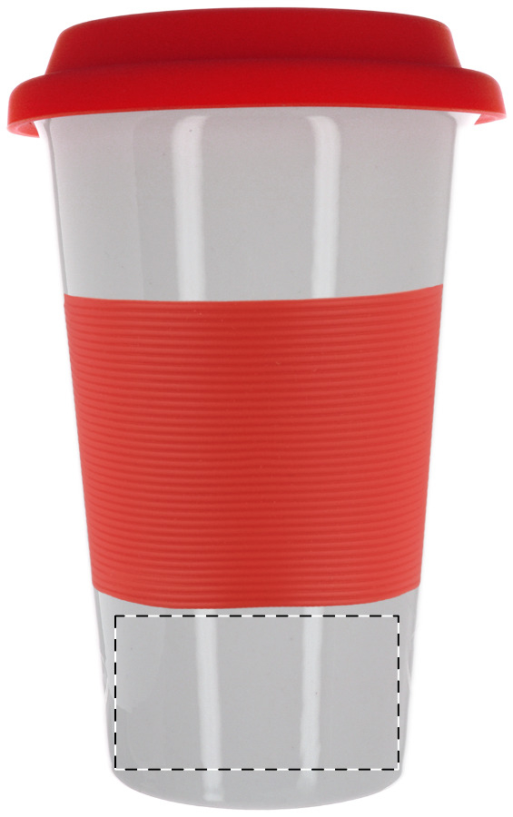 Keramikbecher mit Deckel und Griff aus Silikon, Füllmenge: 400 ml.