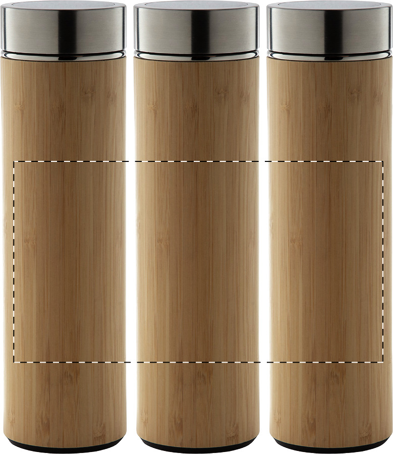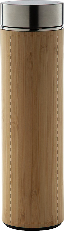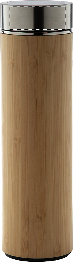 Doppelwandige Isolierflasche aus Edelstahl und Bambus mit Tee-Ei und LED-Touch-Thermometer auf dem Deckel. Füllmenge: 500 ml. Inkl. Knopfzellenbatterie.