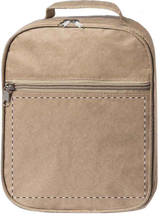 Kühltasche aus laminiertem Recyclingpapier mit Reißverschluss, Aluminiumpolsterung und Fronttasche.